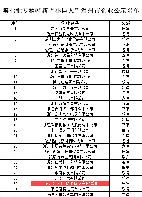 Недавно Министерство промышленности и информатизации КНР официально опубликовало новый список предприятий-«маленьких гигантов» специализированных, точных, уникальных и инновационных. Компания «Вэньчжоу Хели Автоматизация Приборов» успешно прошла сертификацию и была удостоена чести включения в список благодаря постоянным инновациям, мастерскому исполнению и глубокому рыночному опыту в области промышленной автоматизации приборов.